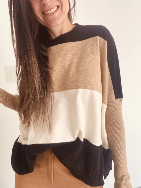 Es un sweater de Bremer con mangas tipo morley. Es bien ancho lo que hace que tenga una súper caída .